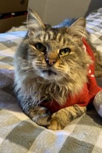 On Wednesday, October 12th, 2022, I, 13-year-old Maine Coon, Chance Sarao aka "Chance Pants, Chancey" crossed Rainbow Bridge. I was born on September 12th, 2009, in Providence, Rhode Island. I am survived by my "pet mom" Natalia Sarao and siblings Louie, Pickles, and Junior. My best friends were my mom Natalia and Pickles. My favorite toys were my mint stick and fish taco. I loved to sleep, cuddle and being with my momma Natalia. Those were my favorite things to do. There was nothing I disliked, I loved everything! My favorite places to sleep were in my momma's bed or on the couch. My favorite food was chicken nuggets from McDonalds. I was loved very much and some of my favorite memories are watching my dancing fruit videos on YouTube and laying with my momma Natalia.