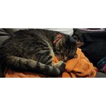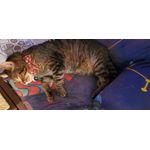 On July 14th, 2023, I, Inuki Mckenna, aka “White-Eyes, The Grey Death”, a Grey Tabby cat mixed with 41% American Domestic cat, 13% Maine Coon, 13% Somali, 12% Norwegian Forest cat, 11% Scottish Fold and 10% European Domestic cat crossed Rainbow Bridge. I was born on April 18th, 2005, in Warwick, Rhode Island, making me 18 years, 2 months, and 27 days old, or 218 months and 27 days old, or 6,662 days old at the time of my crossing. However, you look at it, I lived a long, happy life. I am survived by my “pet parents” Dad Daniel Mckenna and Mom Lauren Watts-Larsen, and now join my late brother Kama “Orange-Face” McKenna, an orange and white Tabby (2/28/2022- 11/22/2010). My best friend was Abbie Watts-Larsen an old lady Japanese Chin, whom many times I came close to touching when sleeping. In my old age, my favorite toys were random felt balls with tails on them and bells inside, and live wild birds that I would hunt in my youth. I loved being petted, cuddling, resting on my heating pad, and demanding treats. I disliked my feline housemate Guinness, who pestered me until the end, but showed concern when something would happen. My favorite place to sleep was in my own dedicated armchair equipped with my automated food bowl, heating pad, and layers of soft tie dye blankets. My favorite foods consisted of Heart to Tail Chicken flavor cat treats and Cereal Milk. I was supposed to have one and would sneak the other. I was able to share many great memories with my family. Some of them include, watching me run then jump and grab a bird as it was trying to take off from the middle of the yard, doing so in a way that made me spin 180 degrees in mid-air with bird in mouth, the way I would stand next to Dad on the couch then meow and gently tap his arm with my paw for pets, the way I would use my toe beans to gently boop the blind dogs that lived with me if they were about to collide with me, Dad watching me be born and helping me out of my amniotic sac, standing under Mommy and looking up at her until she picked me up and snuggled me, they also thought I had the cutest tiny sneezes, when I would steal whatever dog food the dogs left on their plates, and how I looked so cute in outfits and bow ties. I loved my vests and sweaters when it got chilly. Everyone’s favorite memory as well as my own, is how I made a house a home.