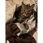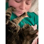 On March 31st, 2023 beloved pet and family member, 16 year old, brown and black Domestic Shorthair Tabby, with beautiful yellow/amber eyes, Peter Theriault, aka “ Pete, Bubbah, Wubbah, My Sweet Boy” crossed Rainbow Bridge. Peter was born in the month of February 2007 in Rhode Island and then adopted by “pet mom” Andrea Theriault in the month of April 2007. Besides “pet mom” Andrea, Peter is survived by kitty mom, Tiger Lilly and kitty sister, Tinkerbell. Everyone that Peter met was his best friend, but mostly mom Andrea. His favorite toys were a good old fashioned box, hair elastics, fake mice, lights, laser pointers and reflected lights. Peter’s favorite things to do included snuggling with mom Andrea, stealing people food, especially black olives, playing fetch with hair elastics, climbing in mom’s plants when she would go to the bathroom. Peter disliked closed doors, especially if mom Andrea was on the other side, when Tiger and Tink would fight, going outside and riding in the car. You could find Peter asleep in one of his favorite spots, on the back of the couch right next to mom Andrea’s head, or in her warm spot on the couch when she would get up and against her chest under the covers in the bed. So you could say, his favorite place to sleep was anywhere with mom Andrea. Peter’s favorite foods were sour cream, ice cream, chicken and black olives! Pete never met a treat that he wouldn’t eat. Words from mom Andrea and her favorite memories of her precious boy Pete: “As a kitten, Pete made off with not 1, not 2, but 3, 8oz Filet Mignon steaks that I had cooked for dinner with friends and left unattended on the kitchen table. Every single one was bigger than his tiny kitten head. Despite never going outside, he was an impressive and accomplished hunter and ate many flies. He once left me a leg-less cricket and even caught an errant bird that had the misfortune of making it into our apartment. All the snuggles are the best memories though.”