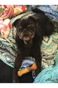 Sierra, Black Pearl of the Sea Souza, 13 years old, crossed the rainbow bridge on December 22nd 2018. She leaves behind her human mother, Alison L. Souza, her nanny Sandra as well as her pet siblings Penny (dog), Marina (cat), Skye (cat). She had numerous pet siblings whom have recently passed including her BFF Delilah (pug), Oliver (dog) and Beezo (dog). Sierra, very friendly loved everyone she came in contact with human and pet and she is a member of The Rhode Island Pug Group