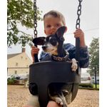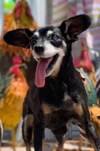 Tumbles was adopted by Teresa Beirola in 2007 from local MinPin Rescue. Not much is known about her previous life but, it was clear that she did not trust many people. Teresa won her over with treats and they formed a beautiful connection until Teresa’s passing in 2011. Teresa’s adult daughter Jen, loved Tumbles and was happy to take her in as part of the family. In 2014, Jen added an English Bulldog puppy “Betty” to their pack. Tumbles raised Betty as if she was her own puppy. They grew to be the best of friends and faithful companions.